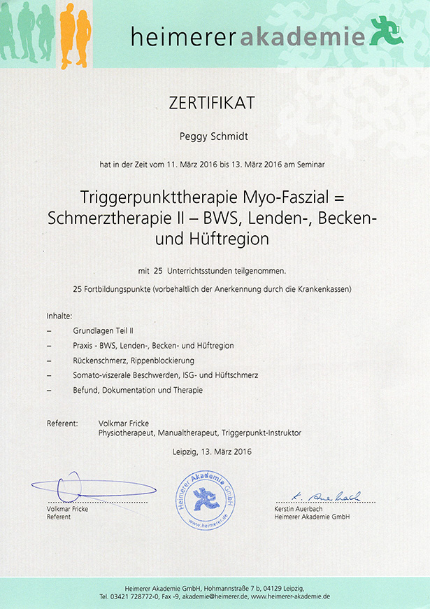 >> Zu den Zertifikaten Triggerpunkttherapie