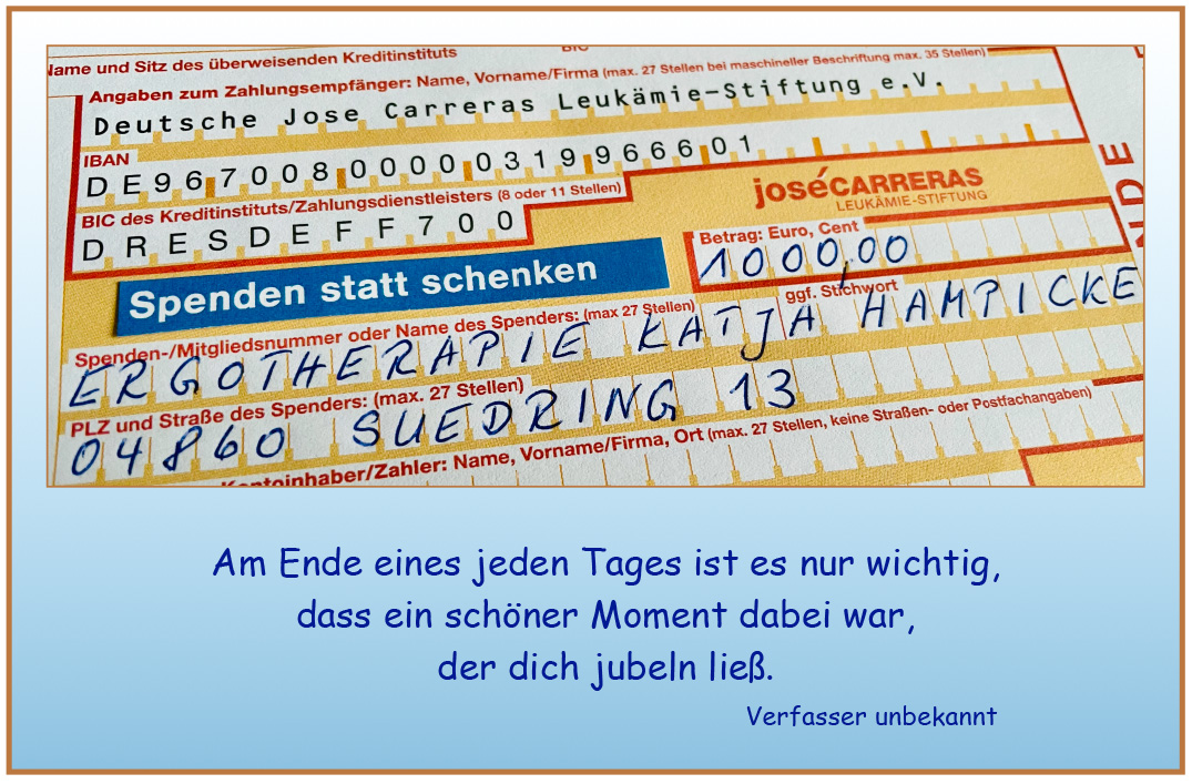 Weihnachten 2023, spendeten wir 1000,00 EUR an die Deutsche José Carreras Leukämie-Stiftung e.V.